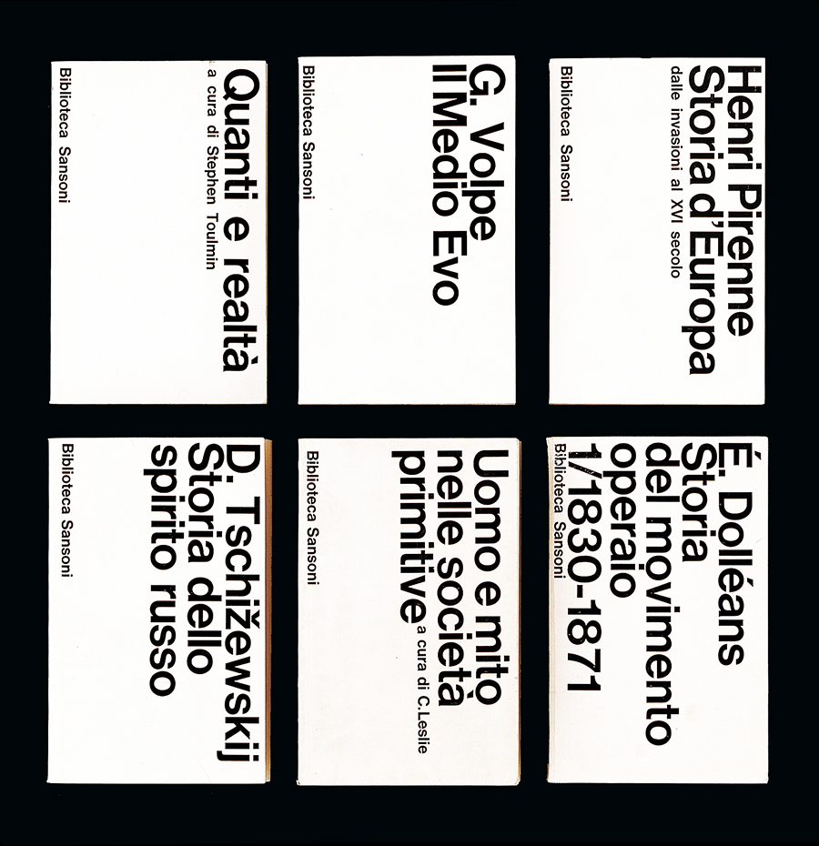 [Note: “Vignelli asked Nava to go to Switzerland and buy the lead blocks for that typeface […], but Nava wasn’t the only one with Helvetica in Milan. Tipocromo—that later changed its name in to Cromotipo—also had it in their catalogue,” as Giancarlo Iliprandi stated. After researching, I came to the conclusion that the first one to use Helvetica in Italy could have been Egidio Bonfante for the covers of Edizioni di Comunità, printed by the Stabilimento Poligrafico G. Colombi in 1960.] The peculiarity of Helvetica didn’t lies only in its shape, but in the fact that the types didn’t have shoulders, so that the letters could be set almost sticked one to the other, obtaining a unique compactness which was lacking with all the other typefaces.